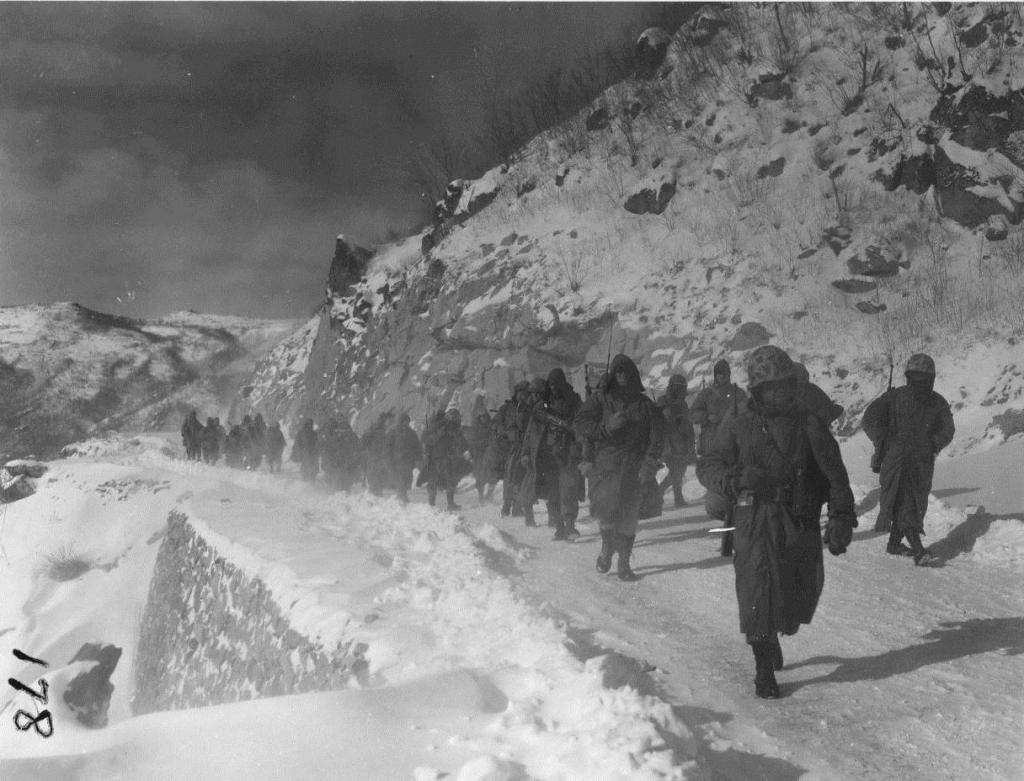 The Battle of Chosin Reservoir took place in the harsh and freezing winter of 1950, when the People’s Volunteer Army (PVA) of China entered the war to counter the presence of United Nations Command (UNC) troops in North Korea. The Chinese force, numbering around 120,000, launched a surprise attack on the US X Corps, an element of the larger UNC contingent, that was stationed near the Chosin Reservoir. The battle had become one of the toughest and most infamous battles for the U.S. Marine Corps since World War II. Fought over brutal mountain terrain and extreme cold weather in North Korea, tempertures had reached -36 degrees Fahrenheit causing frostbite casualties.
